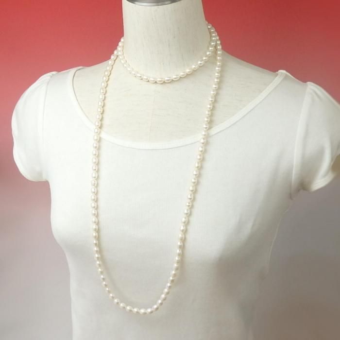 長さを調整して二連ネックレスのバリエーションが楽しめます。