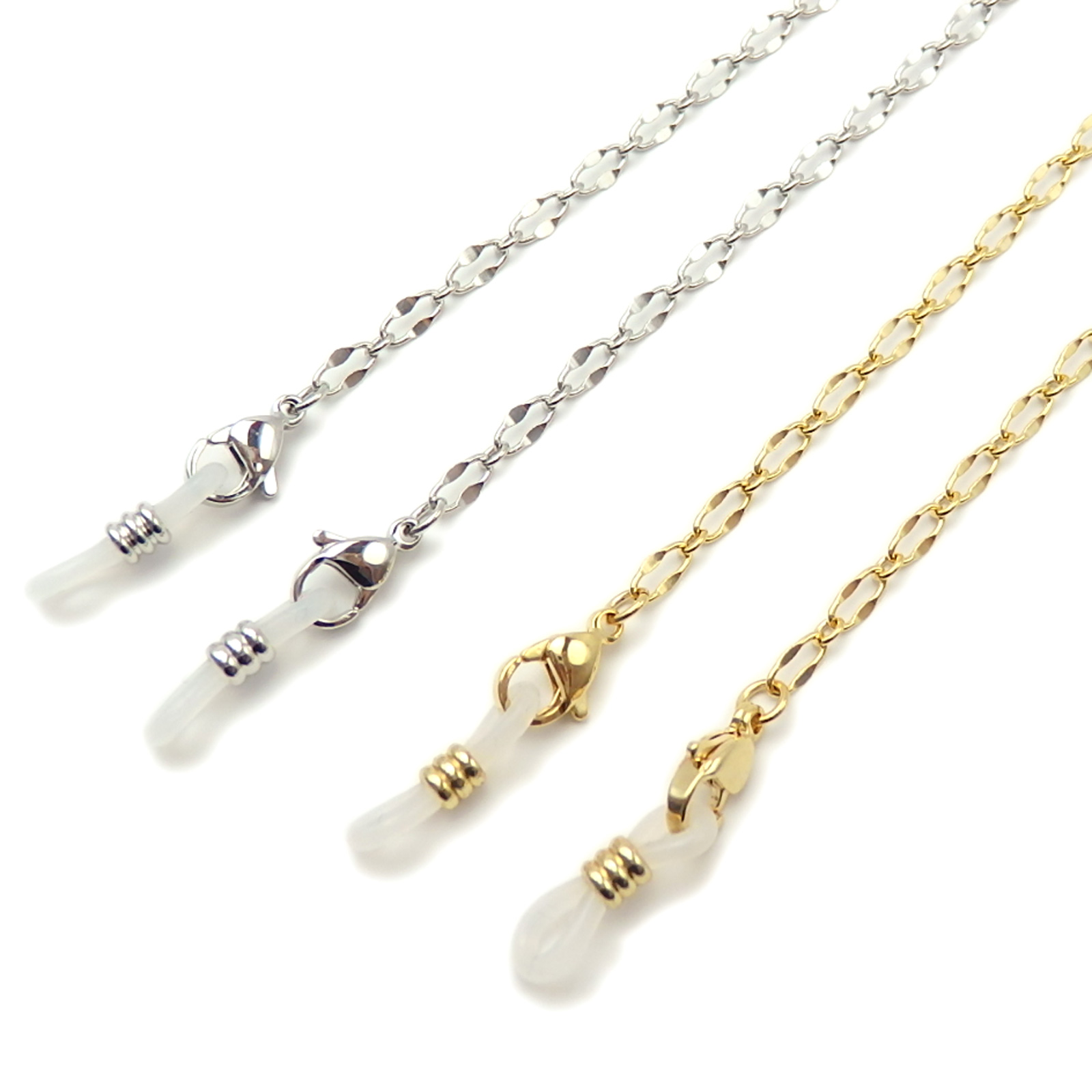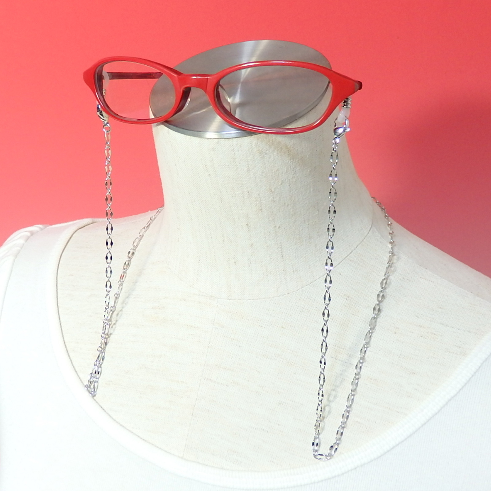 キラキラと光るエレガントチェーンを使用したメガネチェーンです。